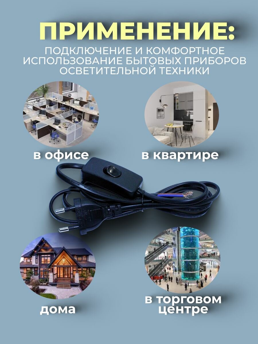 10 цен на Сетевой шнур с выключателем для бра и светильников 1,5м, 250 В 2 А черный