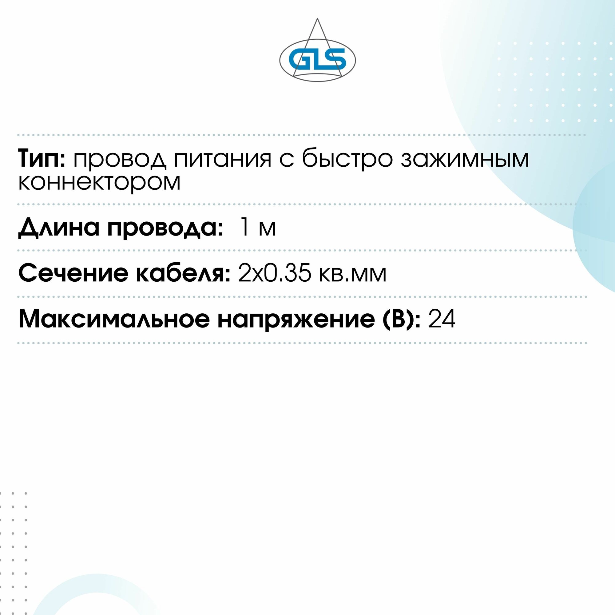 Быстрозажимной коннектор для LED лент 5 мм GLS, провод питания 1 м информация: