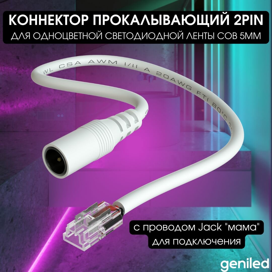 Geniled коннектор прокалывающий 2pin (4мм) с проводом Jack "мама" для подключения светодиодной ленты СОВ 5мм (1шт) информация: