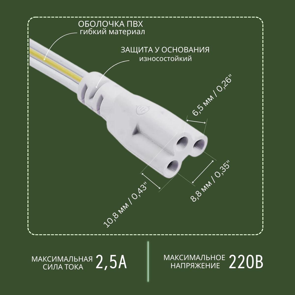 Провод для подключения линейного светильника к сети 220В. 120см. Белый. 3 клеммы информация: