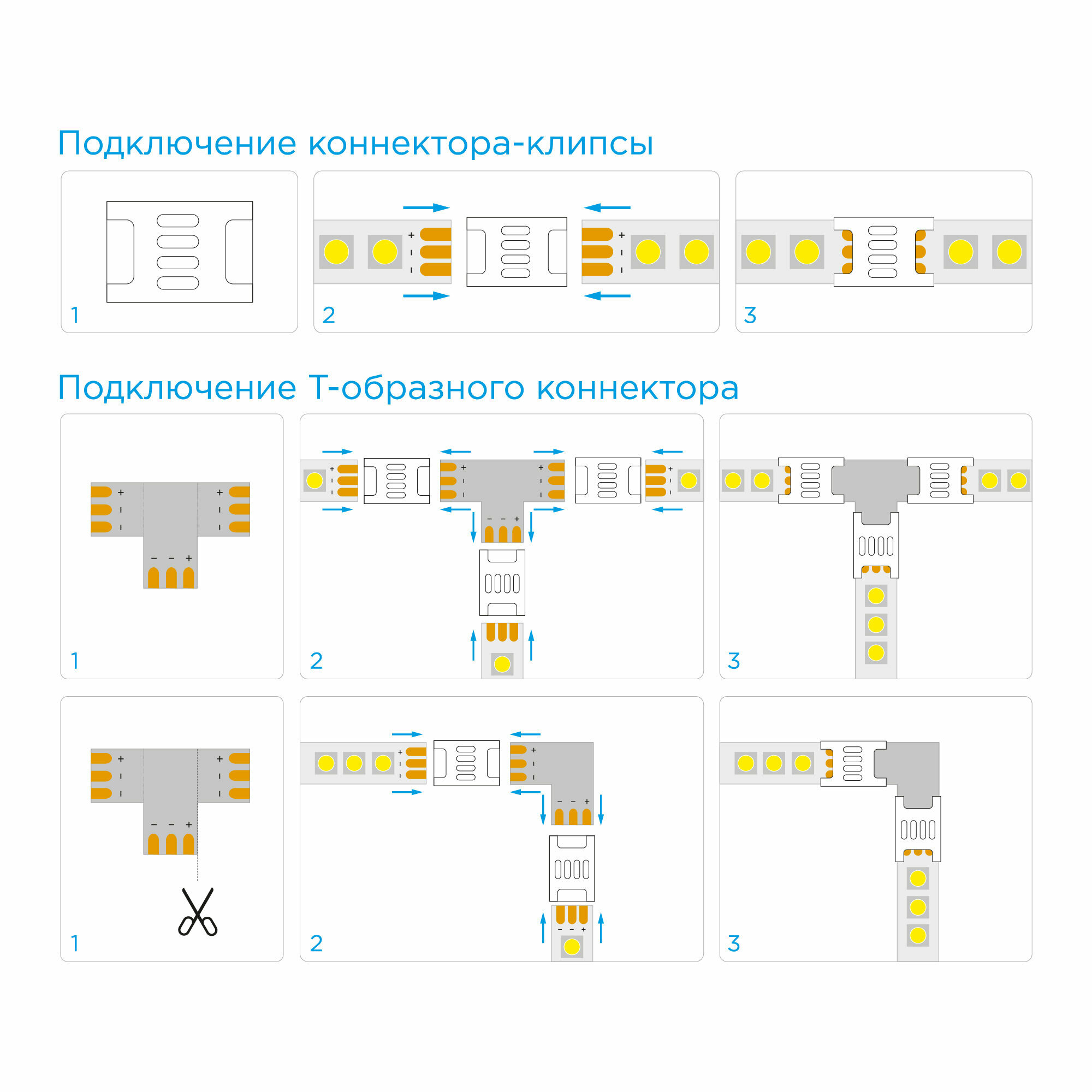 Комплект коннекторов (Т-образный +3 клипсы) для адресной светод. ленты 12/24В, RGB, IP20, подложка 10мм, 3pin. информация: