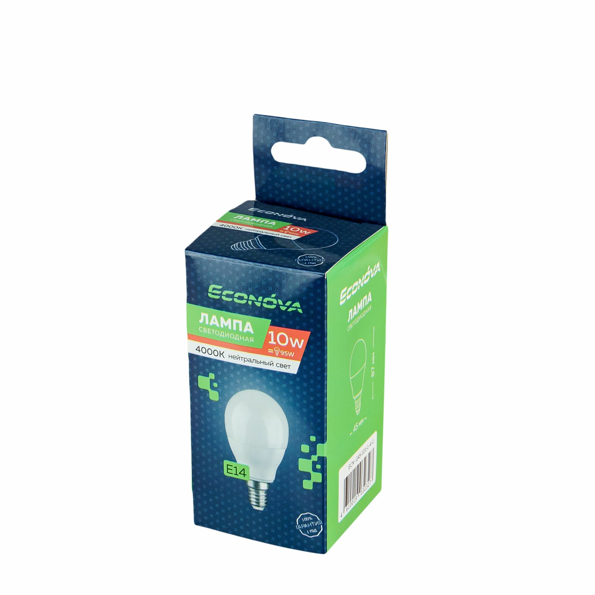 Комплект 10 шт светодиодных ламп цоколь E14, Econova, шар G45-102 10W 4K набор лампочек для люстры информация: