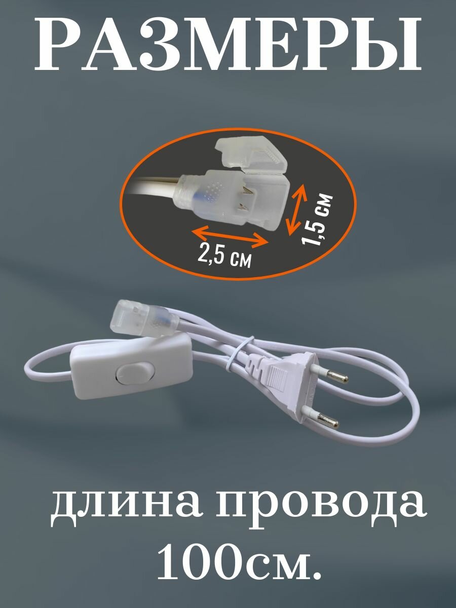 Провод с выключателем и вилкой для светодиодной ленты, сетевой шнур с кнопкой для светильника 1 метр информация: