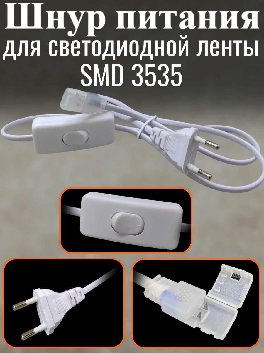 Отзывы на Провод с выключателем и вилкой для светодиодной ленты, сетевой шнур с кнопкой для светильника 1 метр