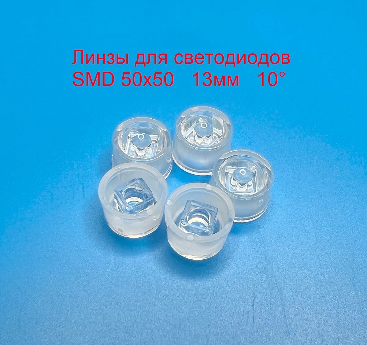 Линзы для светодиодов SMD 50х50, 10°, 13мм, прозрачный корпус, 5 штук. информация: