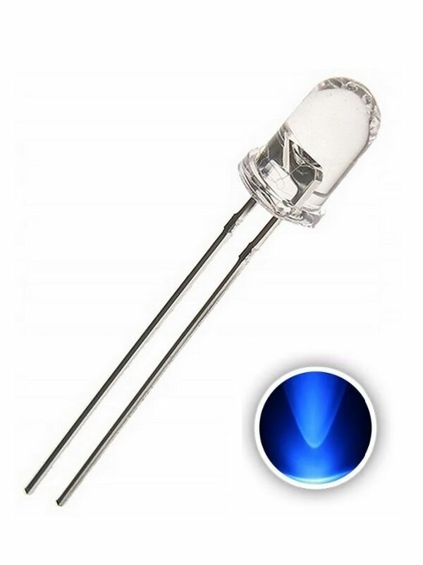 10 цен на Светодиод ARL-5513URC-2cd-12V, 20mA, 5мм, прозрачный корпус, синее свечение (комплект 10 шт)