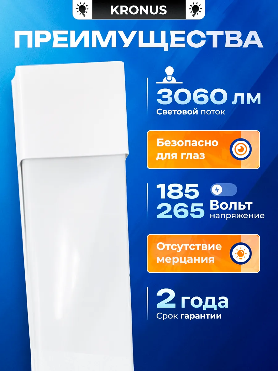10 цен на Светильник светодиодный линейный Kronus 36Вт 6500К IP40 185-265V 1200*63*25мм