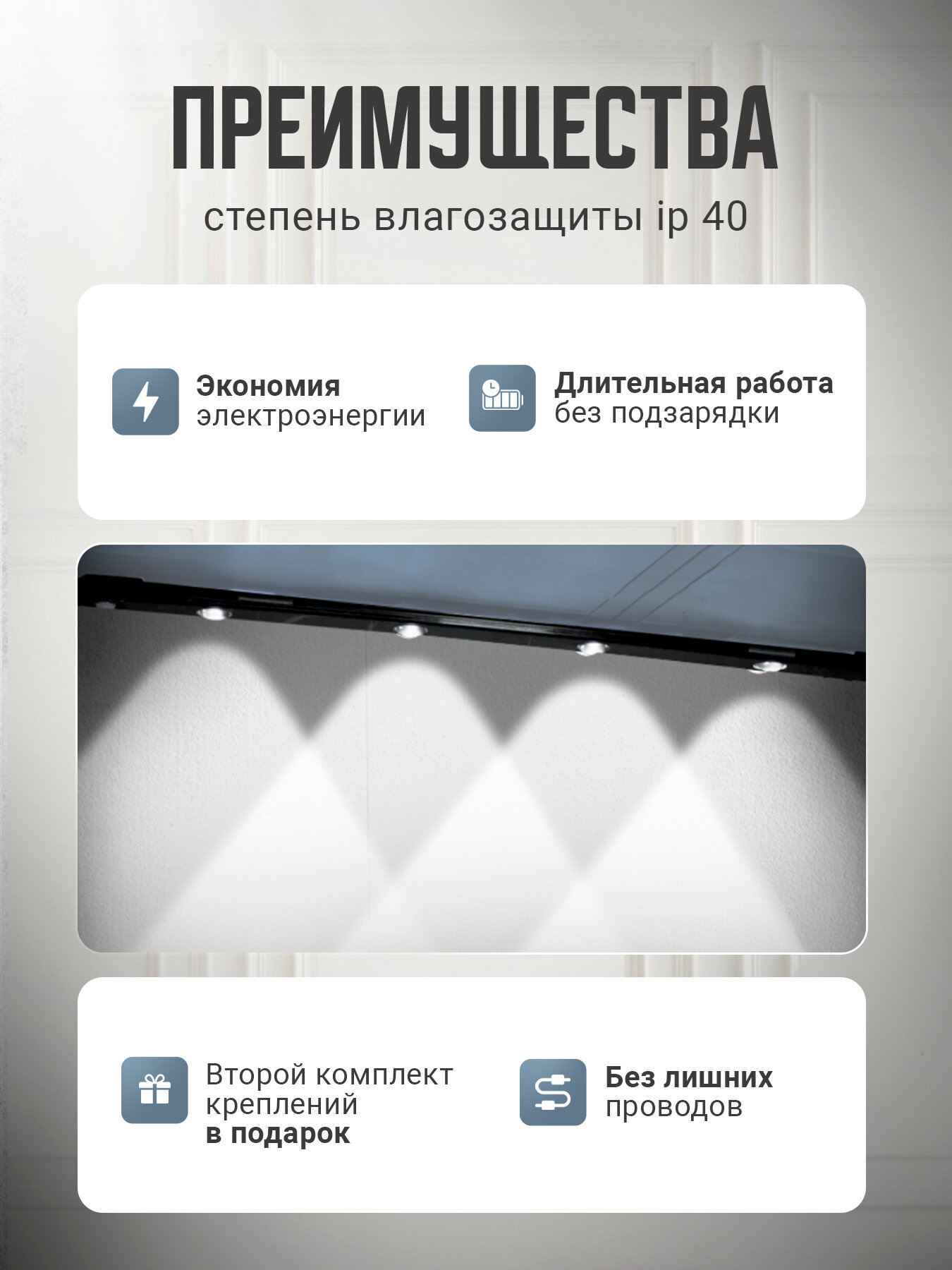 Отзывы на Ультратонкий беспроводной светильник 50 см с датчиком движения