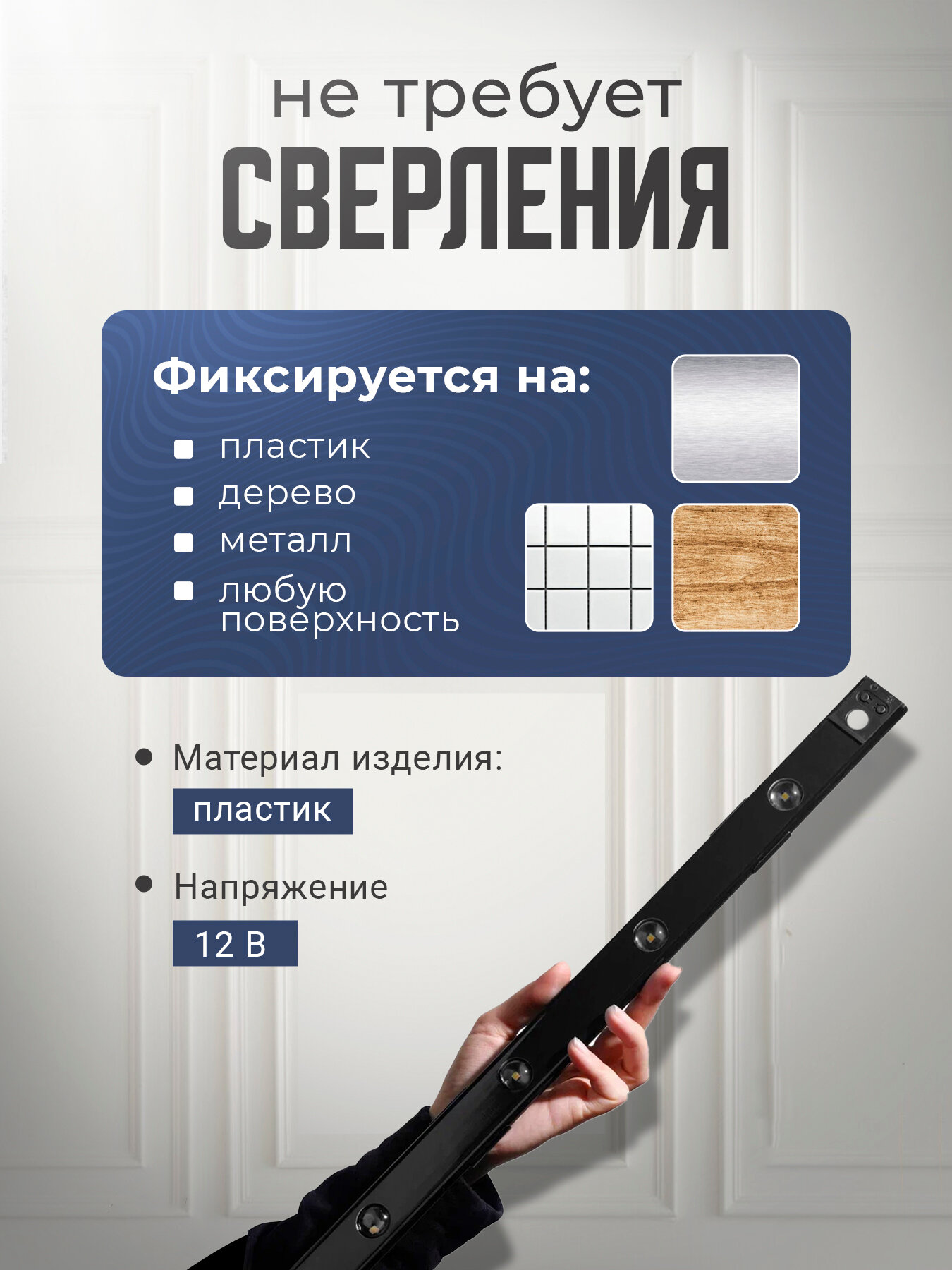 Ультратонкий беспроводной светильник 50 см с датчиком движения информация: