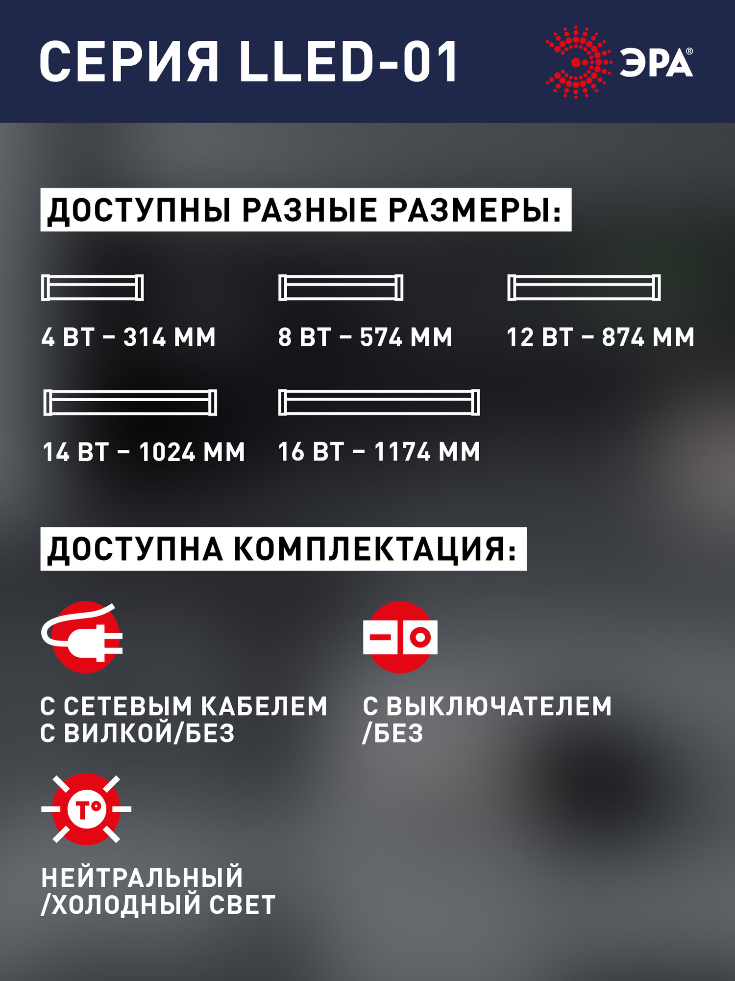 Светильник светодиодный линейный с выключателем 8 Вт 4000К L572мм LLED-01-08W-4000-W ЭРА информация: