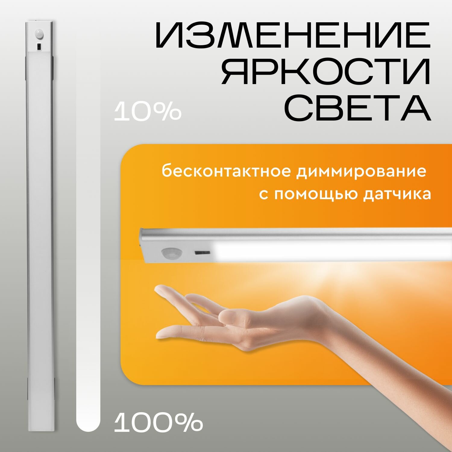 10 цен на Светильник светодиодный беспроводной на магните с датчиком движения и диммером настенный старт , 60 см