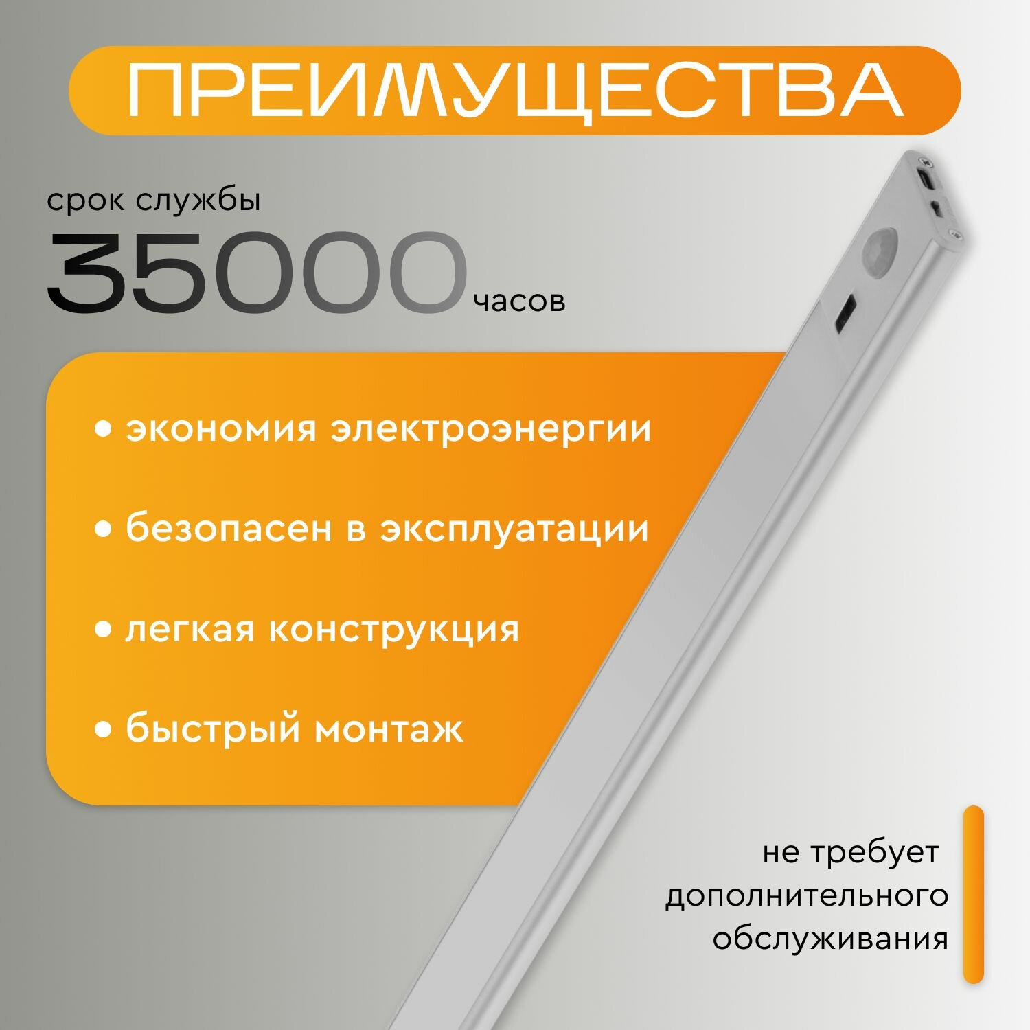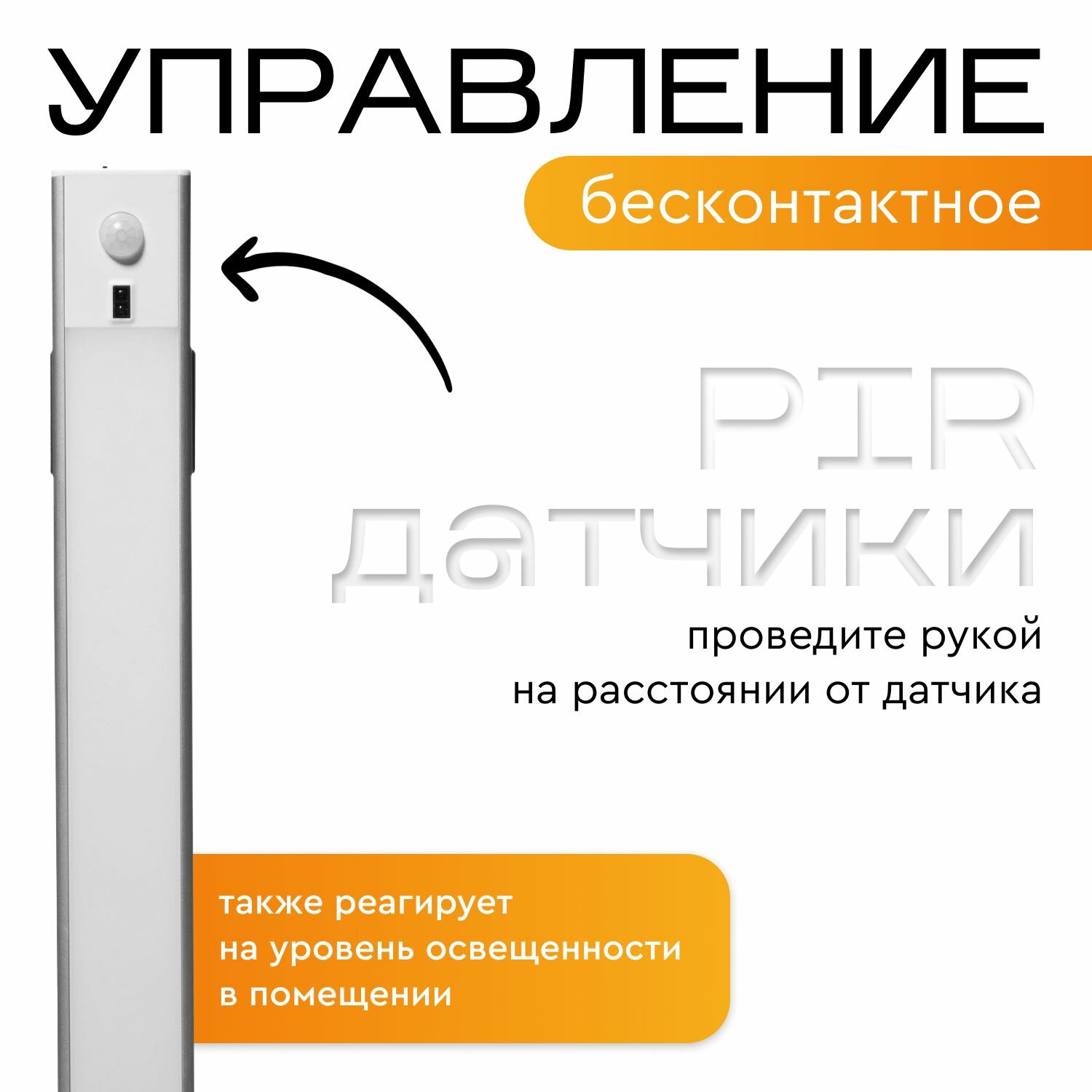 Светильник светодиодный беспроводной на магните с датчиком движения и диммером настенный старт , 60 см информация: