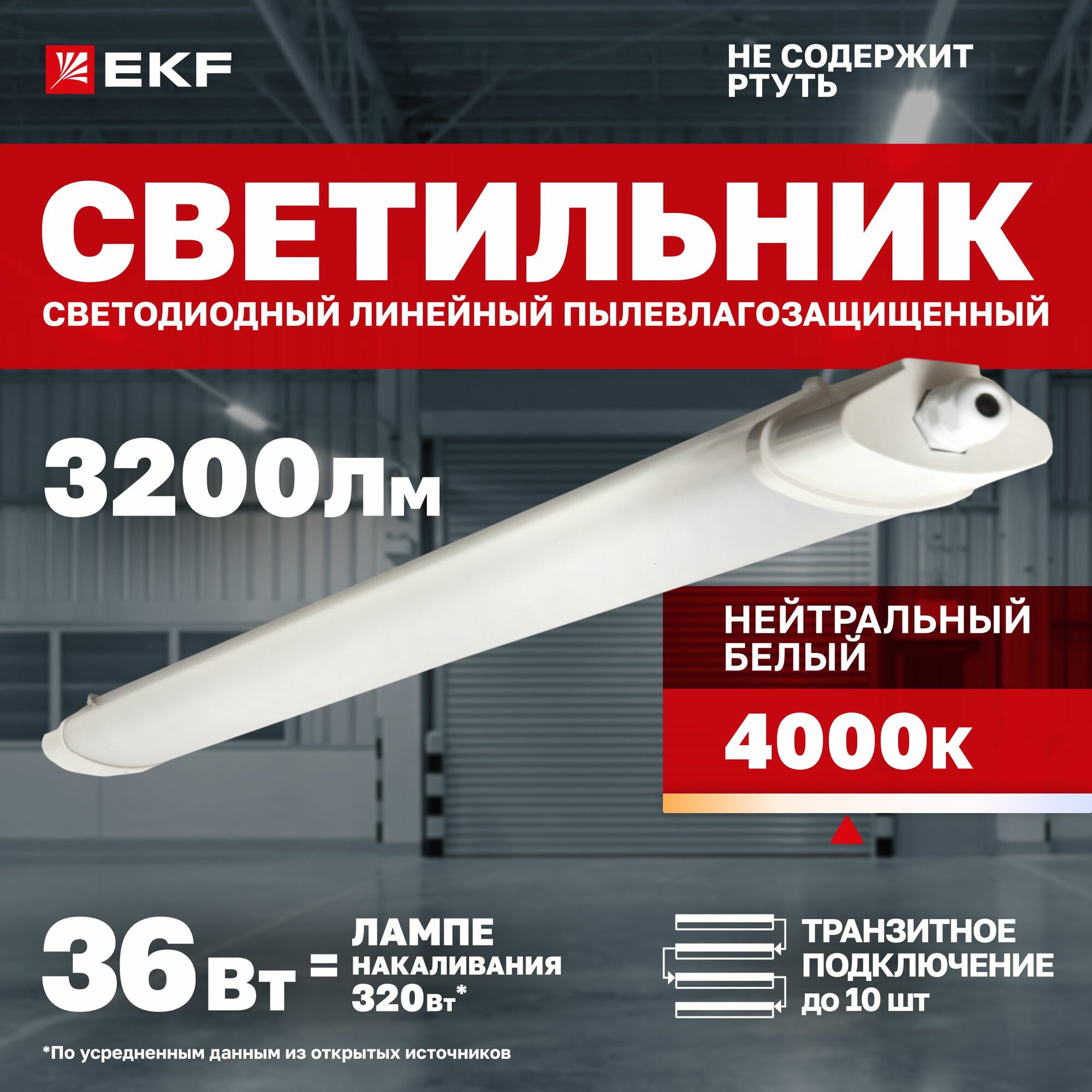 Отзывы на Светильник светодиодный EKF пылевлагозащищенный ДСП-1005-L 36Вт 4000K IP65 1200мм
