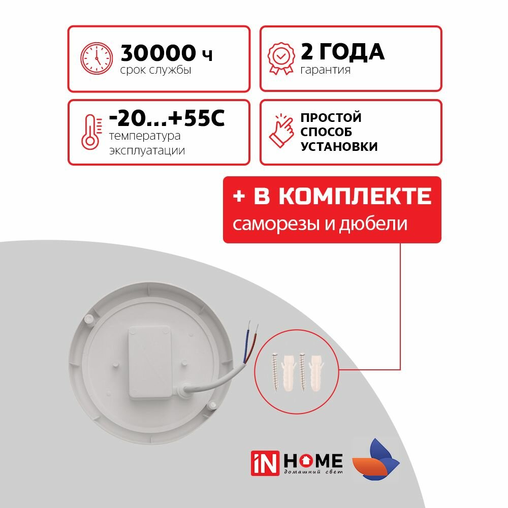 Светильник светодиодный герметичный СПП 1065-КРУГ 10Вт 6500К 900Лм IP65 140мм IN HOME информация: