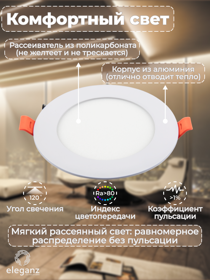 Отзывы на Cветильник потолочный металлический "Eleganz" 6вт, 220в круглый 4500К, для натяжного и подвесного потолка, белый, 1 шт.
