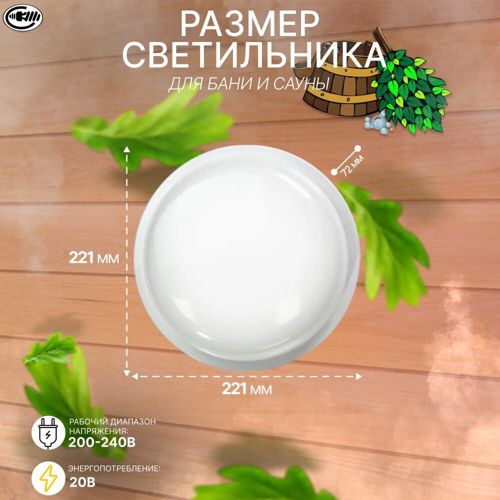 Светильник светодиодный, влагозащищённый, IP65, 20Вт, для бани, сауны, гараж, балкон, погреб информация: