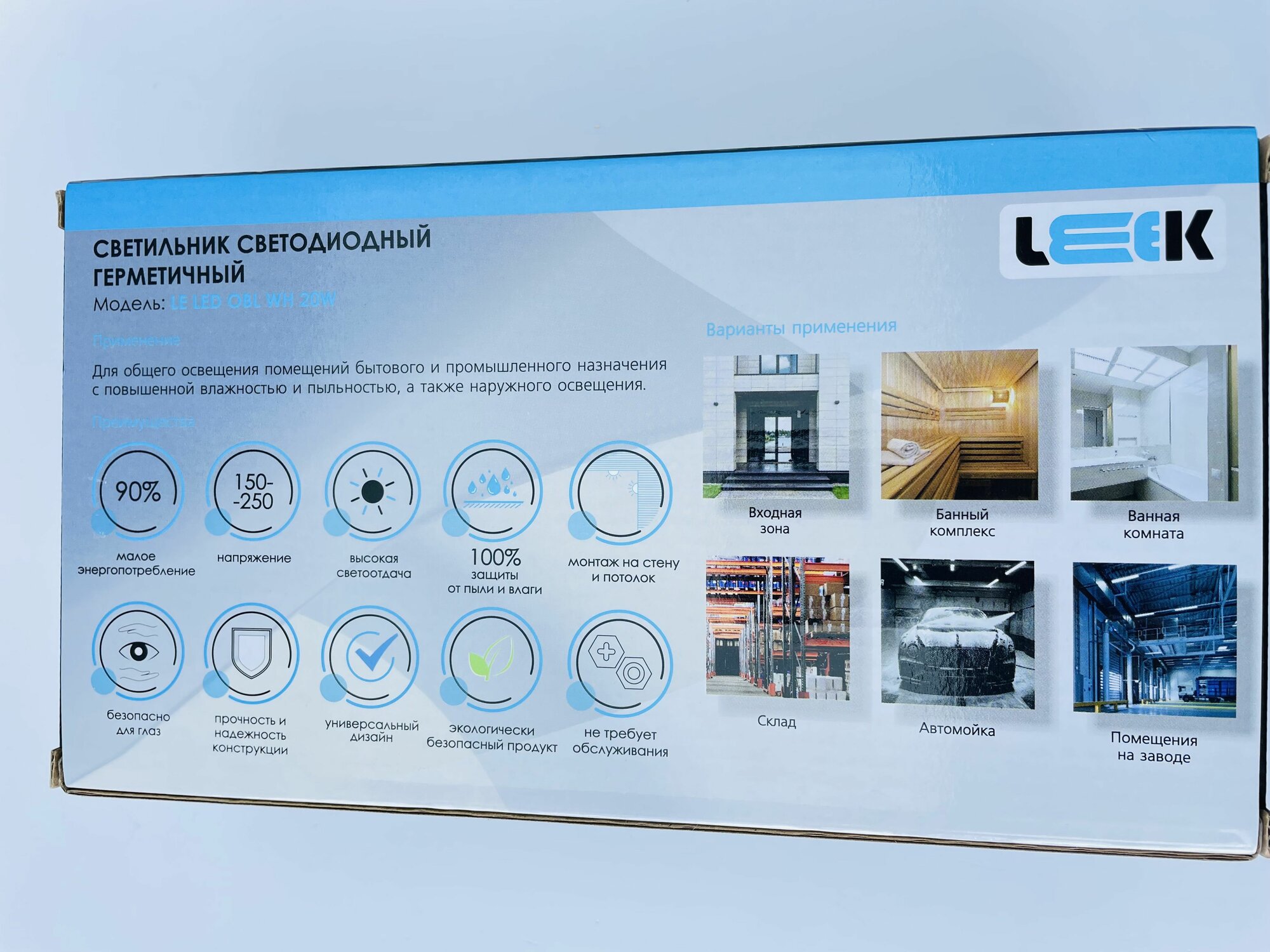 Светильник потолочный, настенный светодиодный подвесной, герметичный влагозащищенный LEEK LE LED SBL WH 20Вт (квадрат), 221х221х72 мм, для бани и сауны, ЖКХ, дом, гараж 1 070 ₽