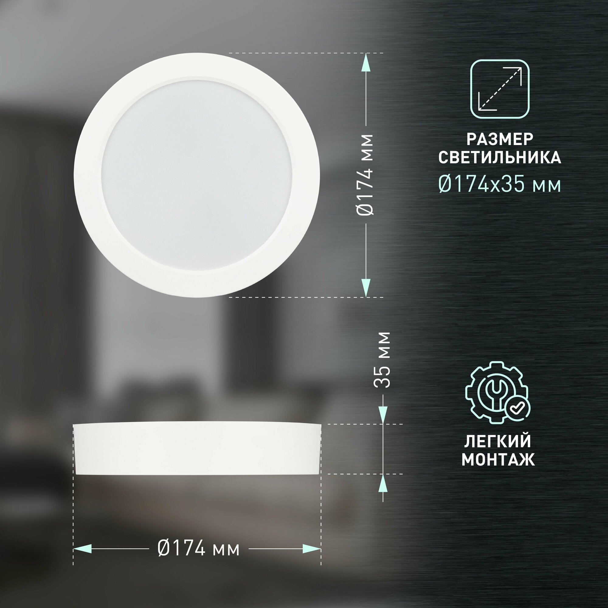 Светильник светодиодный ЭРА LED 19-18-4K накладной круглый 18Вт 4000К информация: