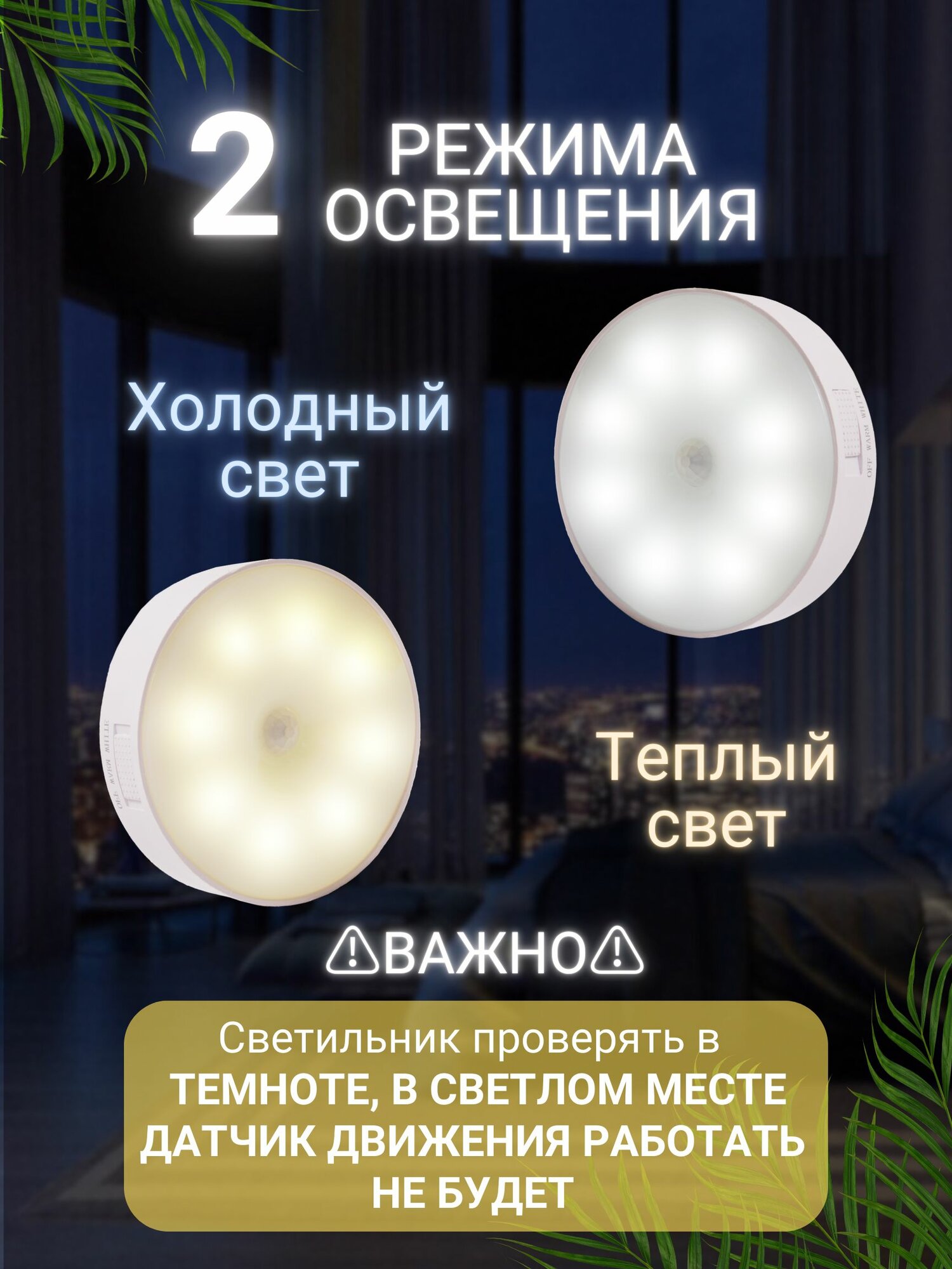 Беспроводной светодиодный светильник с датчиком движения на магнитном креплении. 2 режима освещения 5 шт информация: