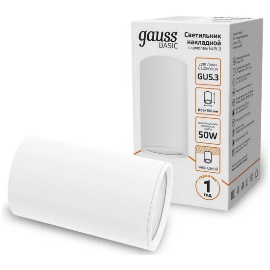 Отзывы на Накладной светильник Gauss Basic, накладной, под лампу GU5.3, белый 1/20/60