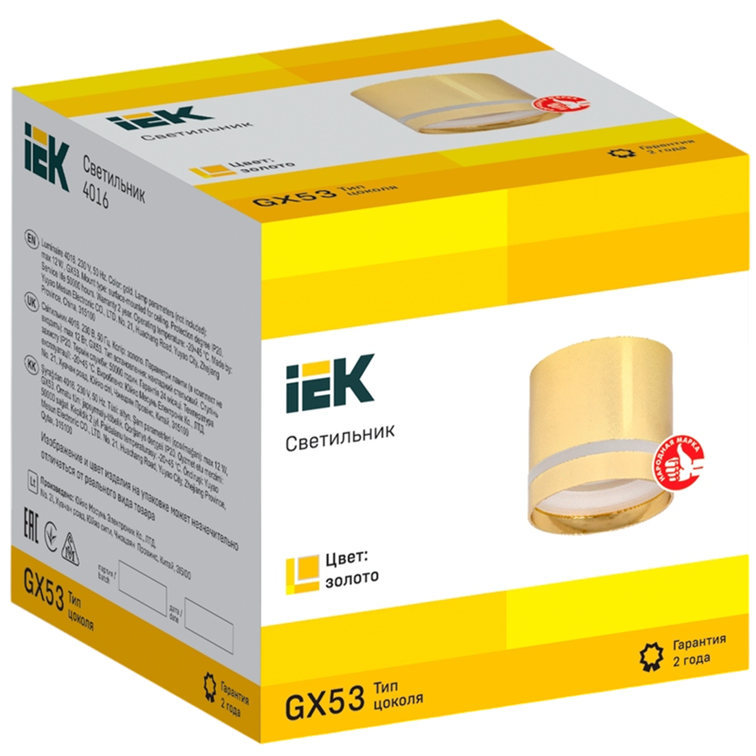 Отзывы на Светильник IEK LIGHTING 4016 накладной потолочный под лампу GX53 золото LT-UPB0-4016-GX53-1-K22