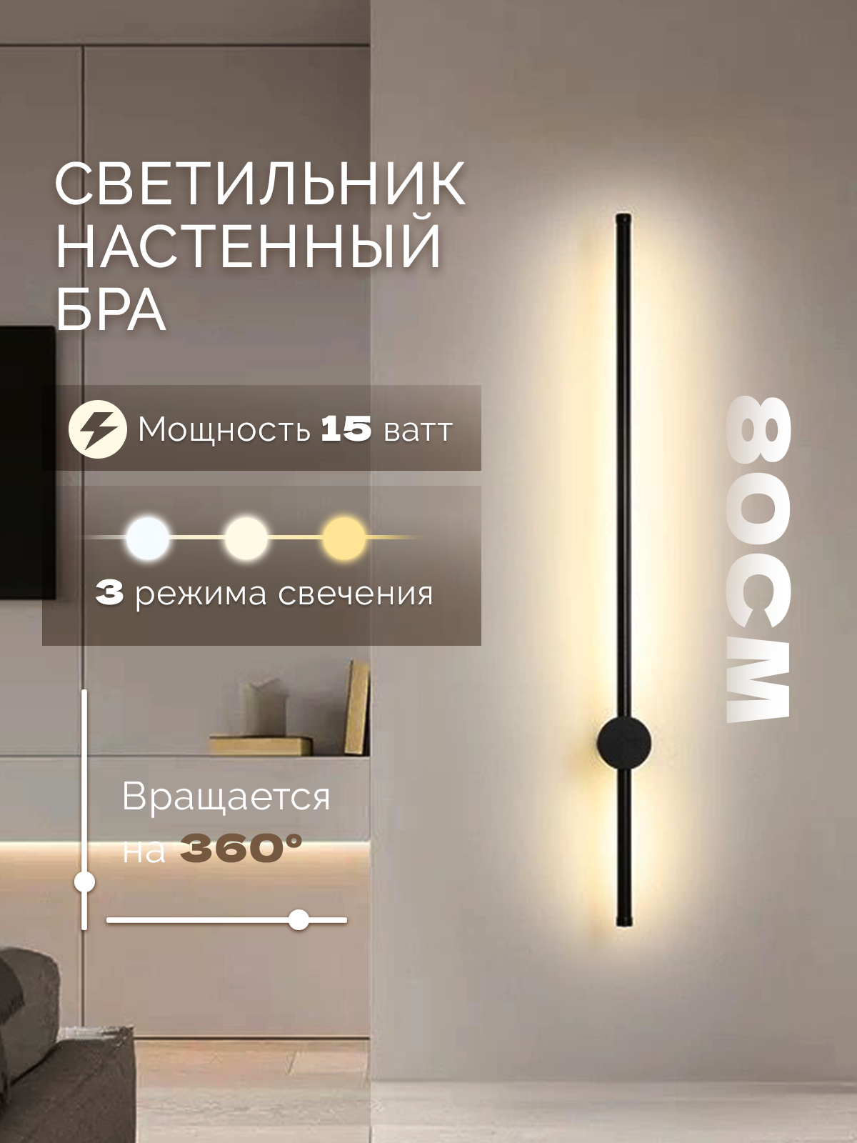 Настенный светильник, черный матовый, 80 см, светодиодный настенный светильник информация: