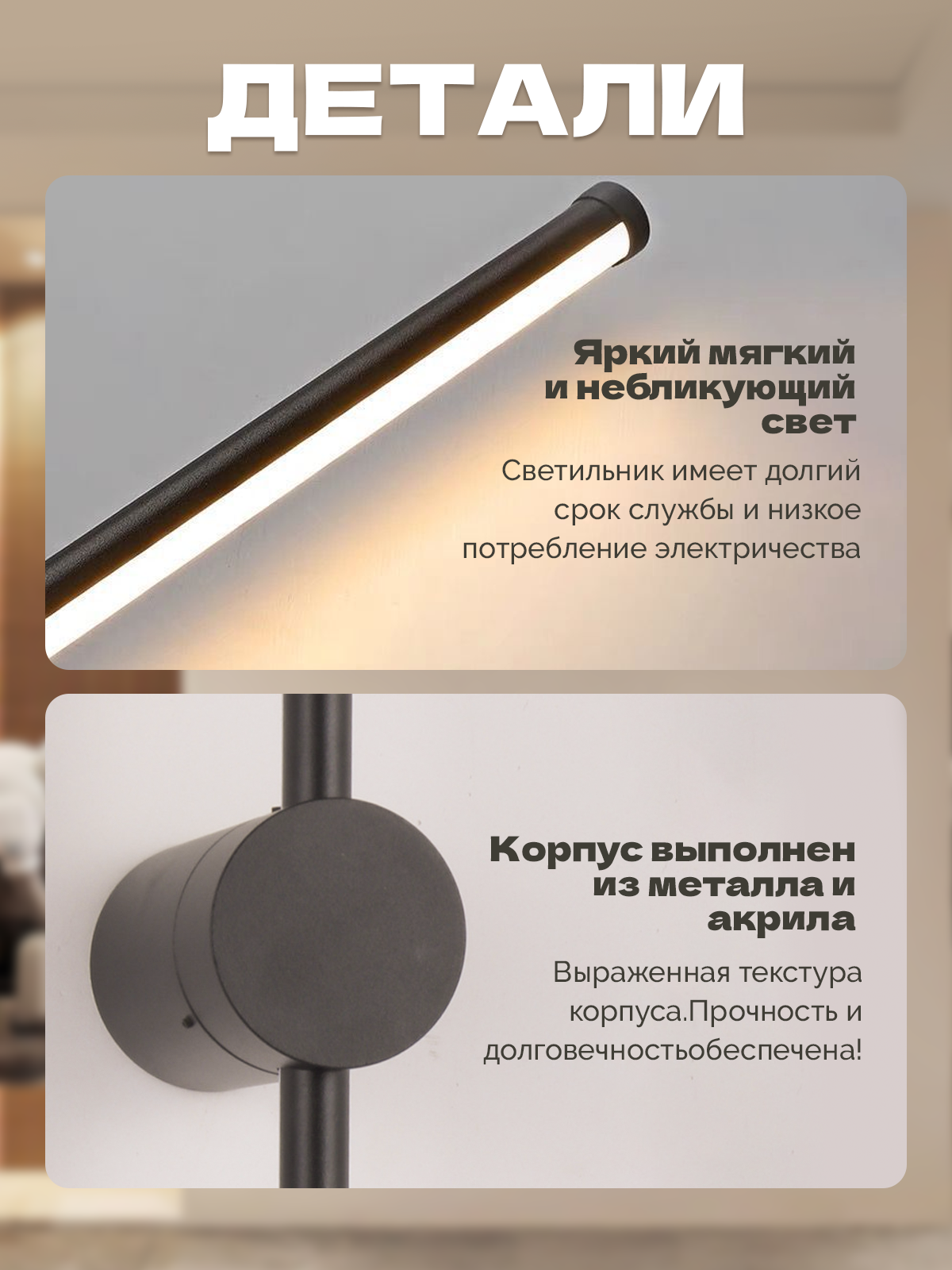 10 цен на Настенный светильник, черный матовый, 80 см, светодиодный настенный светильник