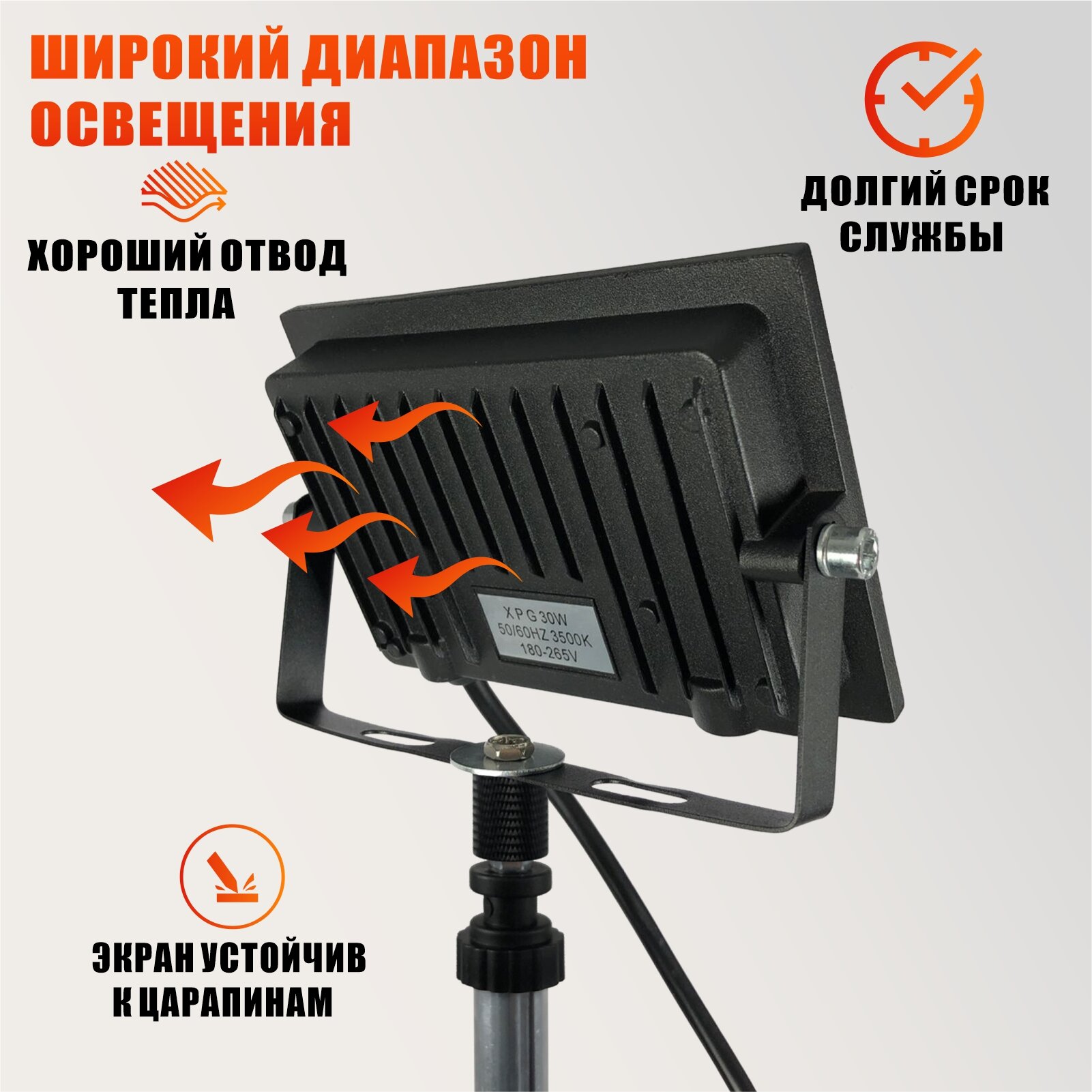 Отзывы на Светодиодный строительный прожектор 30 Вт, 3000K, теплый свет, на штативе 3110-PRJ