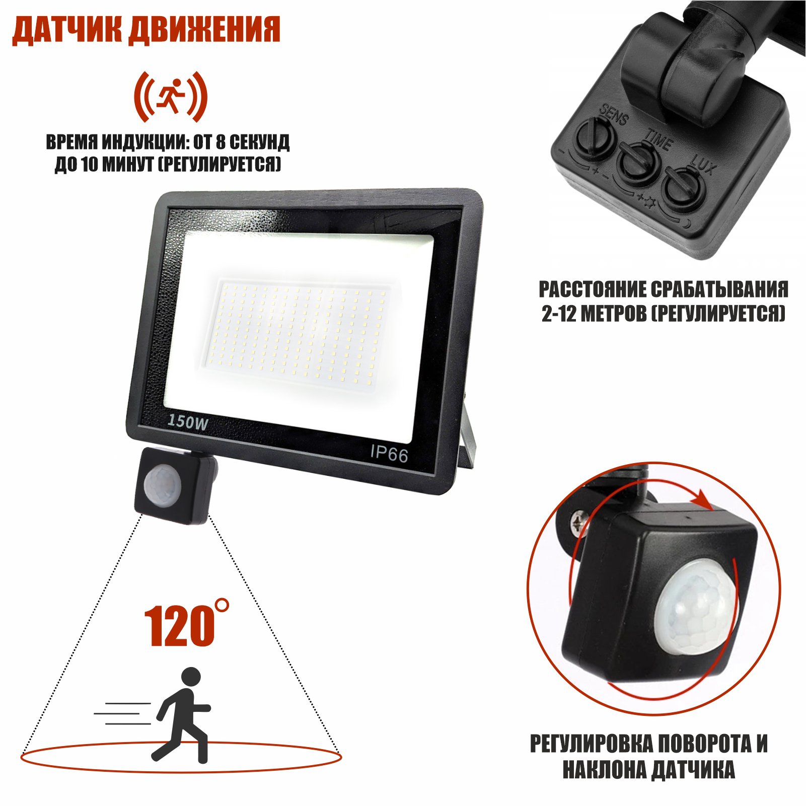 Прожектор 150 Вт с датчиком движения на настенно-потолочном креплении FK-PRJ информация: