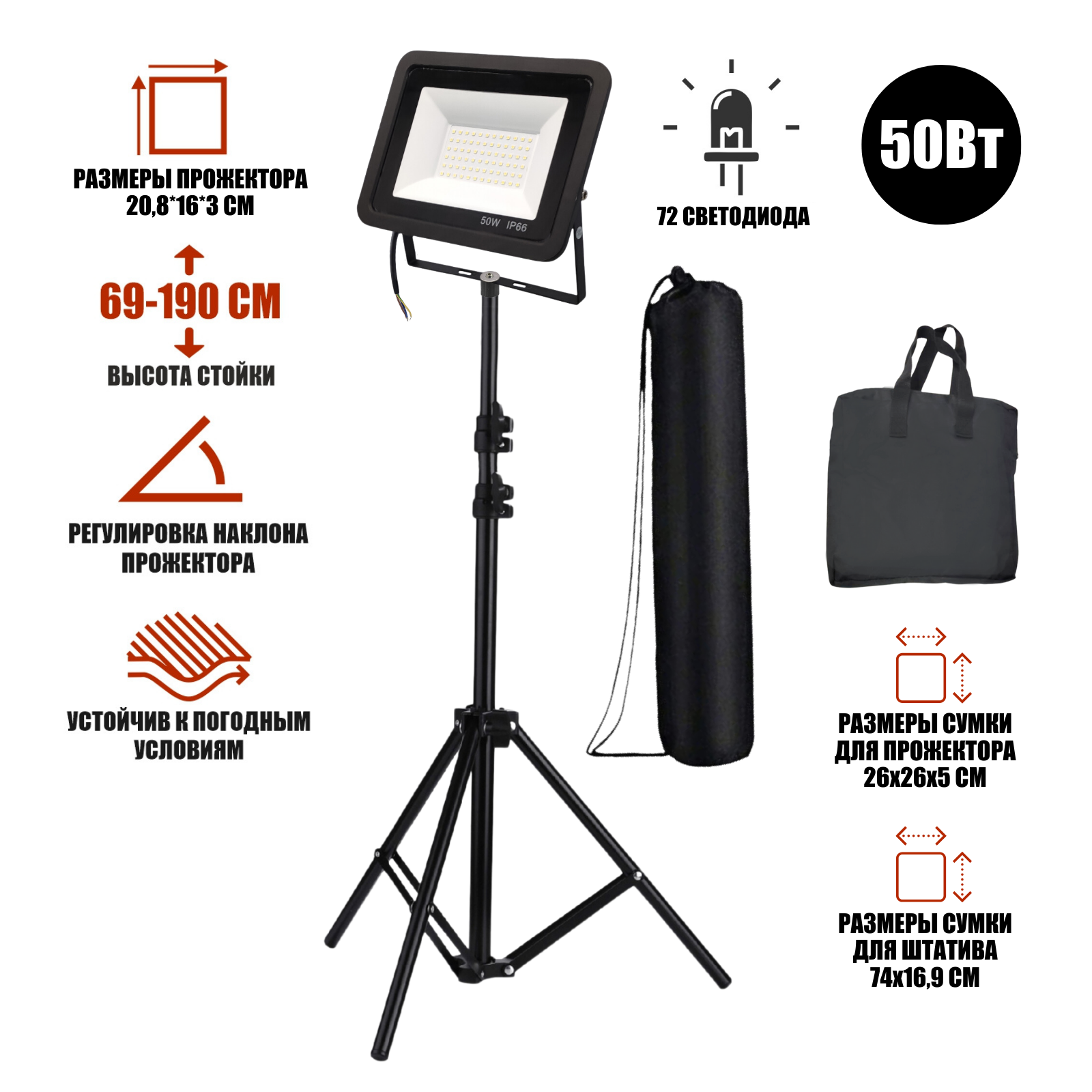 Светодиодный строительный прожектор 50 Вт на штативе JBH с сумками для переноски информация: