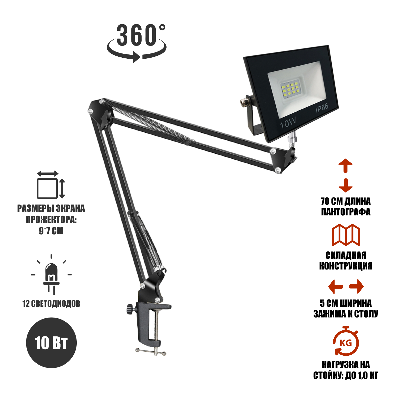 10 цен на Светодиодный строительный прожектор 10 Вт с настольным поворотным креплением KGS на усиленной струбцине