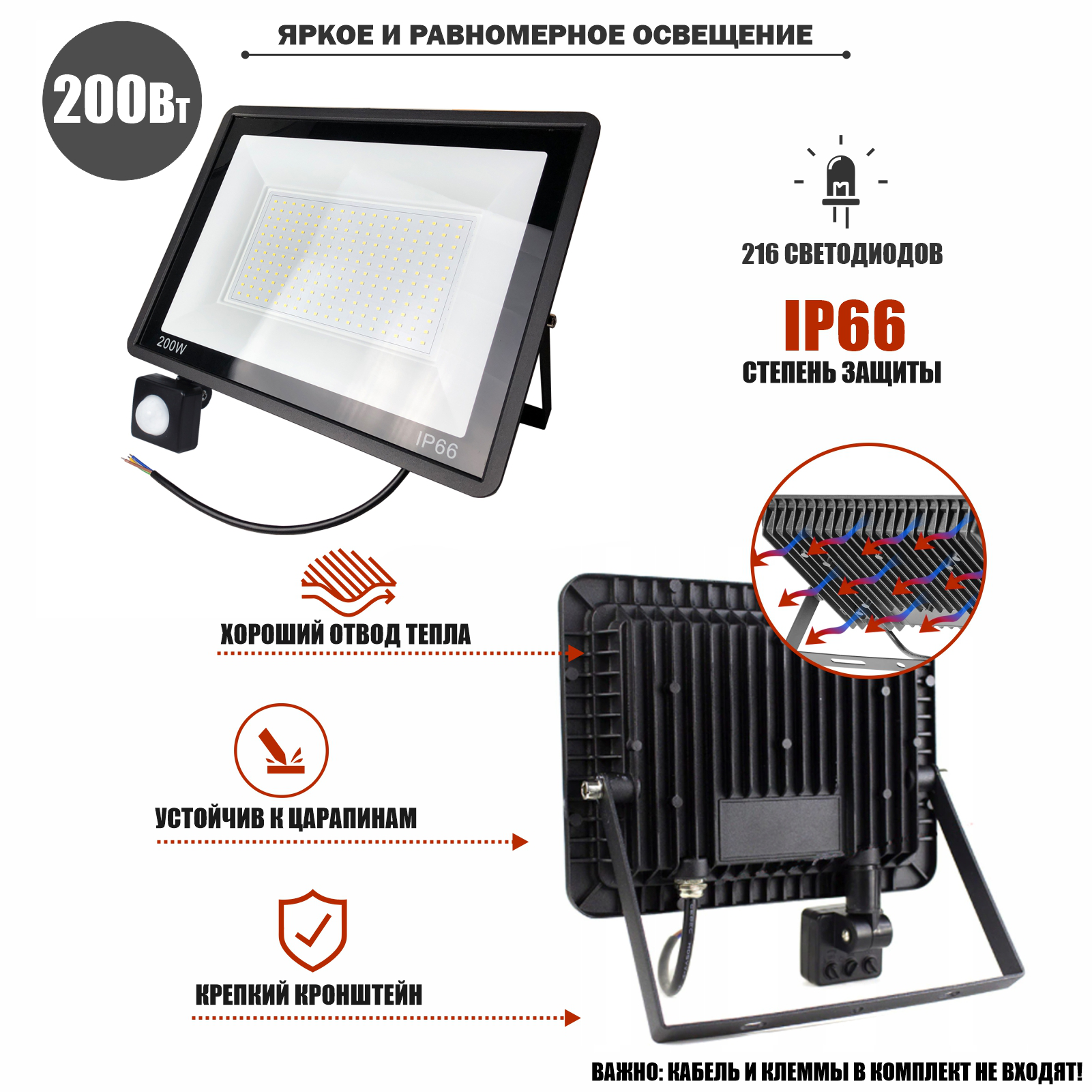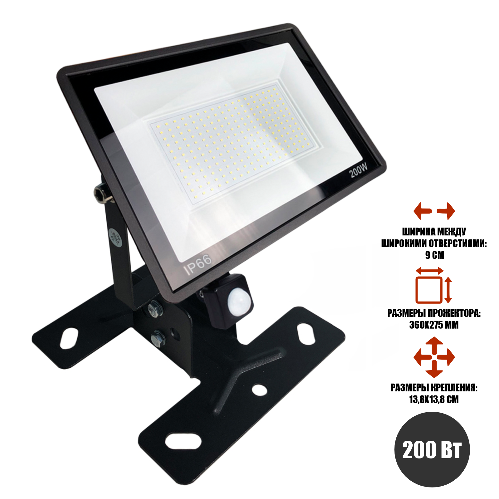 Прожектор 200 Вт с датчиком движения на настенно-потолочном креплении FK-PRJ информация: