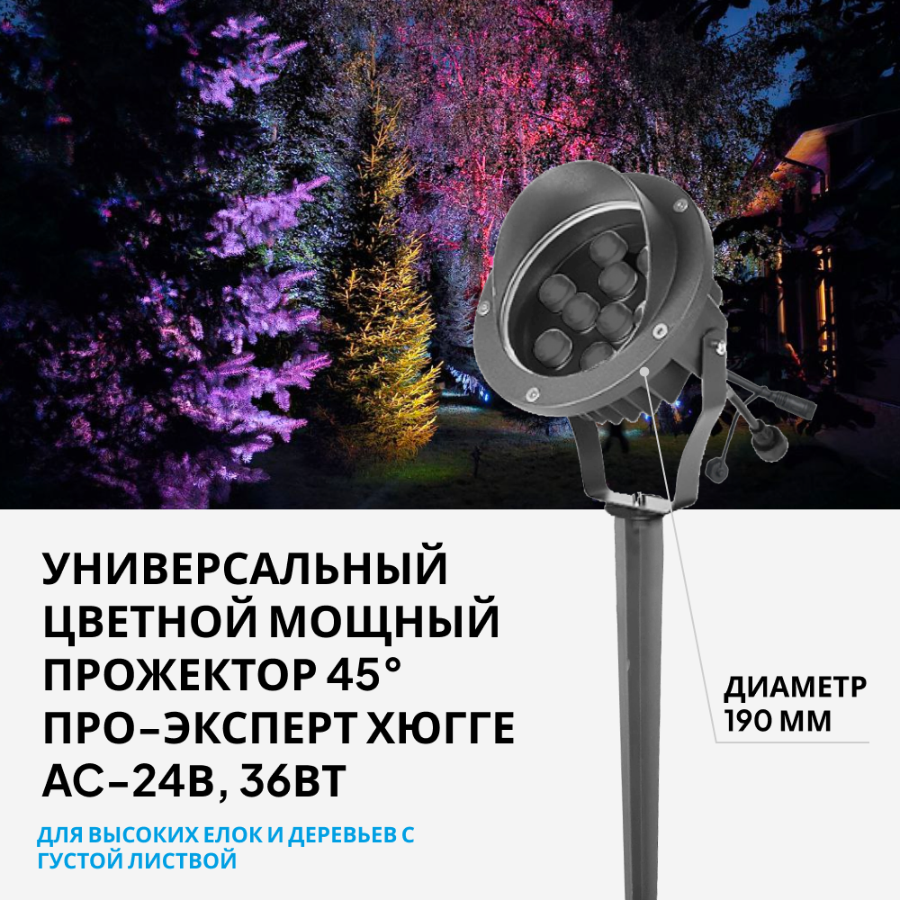 Прожектор-светильник уличный RGB универсальный АС-32В 36 Вт информация: