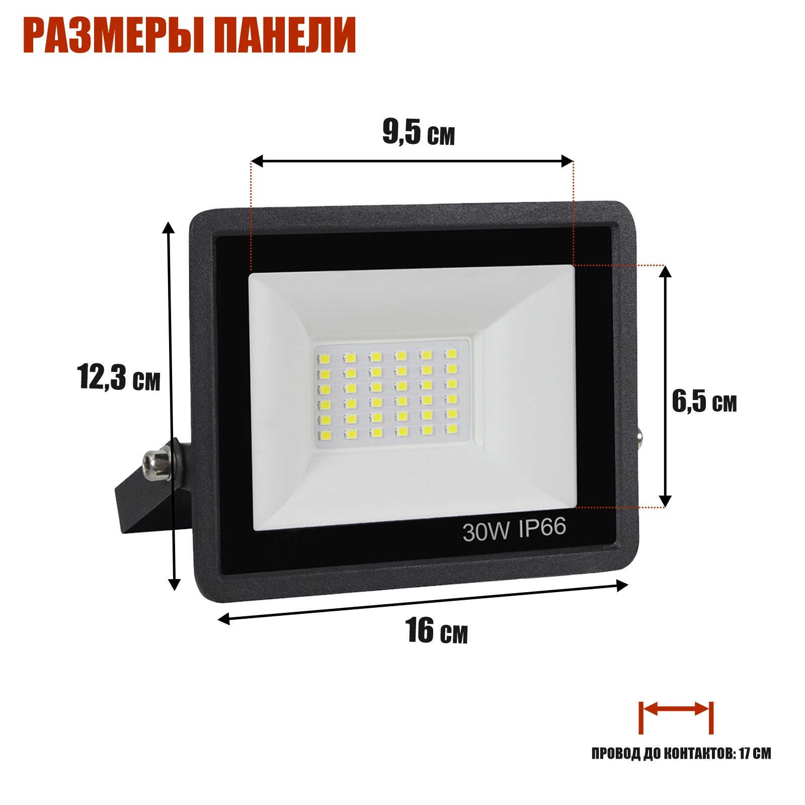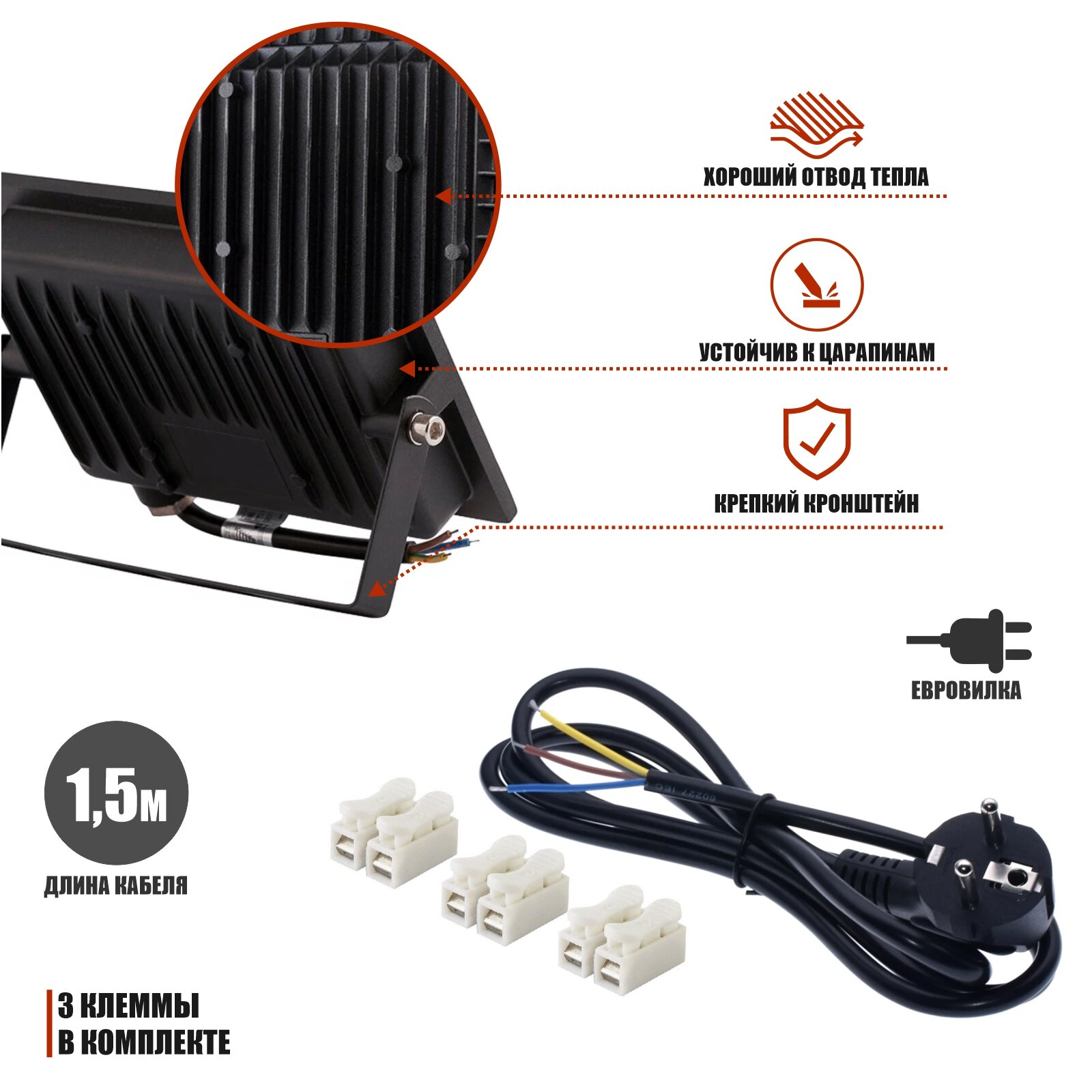 Светодиодный строительный прожектор 30 Вт с кабелем 1,5 м и клеммами на быстросъемном адаптере информация: