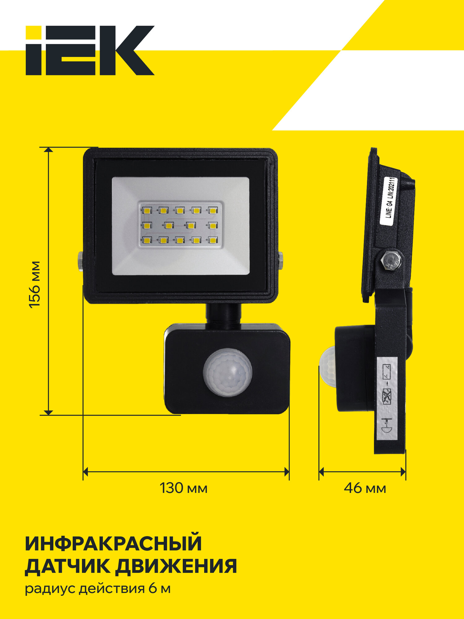 Отзывы на Прожектор светодиодный СДО 06-20Д черный с ДД IP54 6500K IEK, датчик движения, холодный дневной свет, 20 Вт