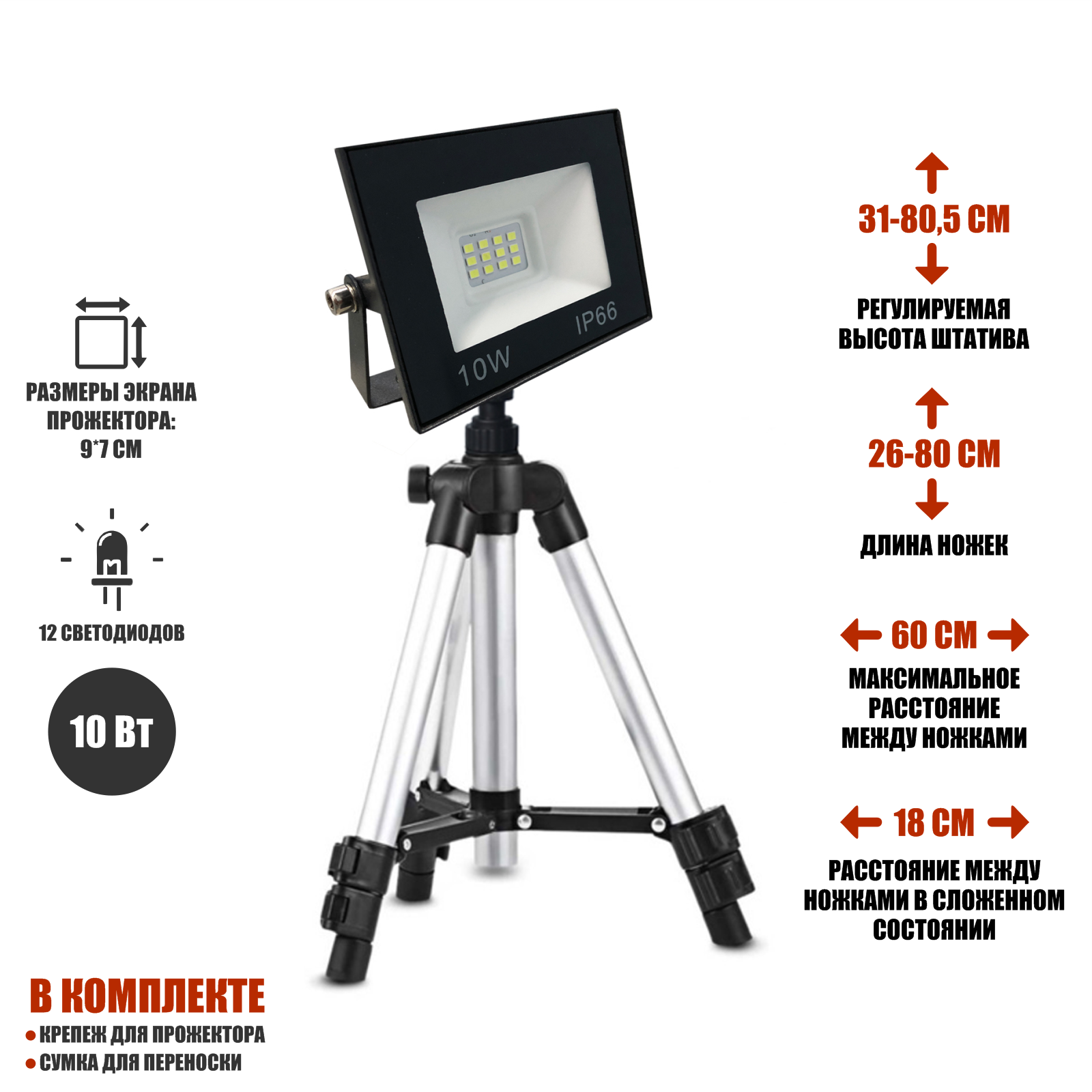 10 цен на Светодиодный строительный прожектор 10 Вт на штативе 3110-PRJ строительном элевационном