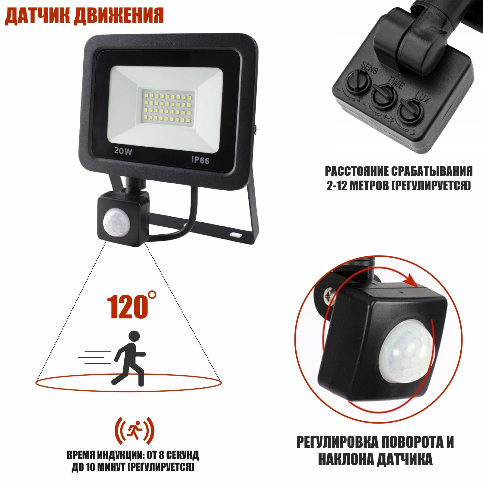 Светодиодный прожектор 100 Вт с датчиком движения информация:
