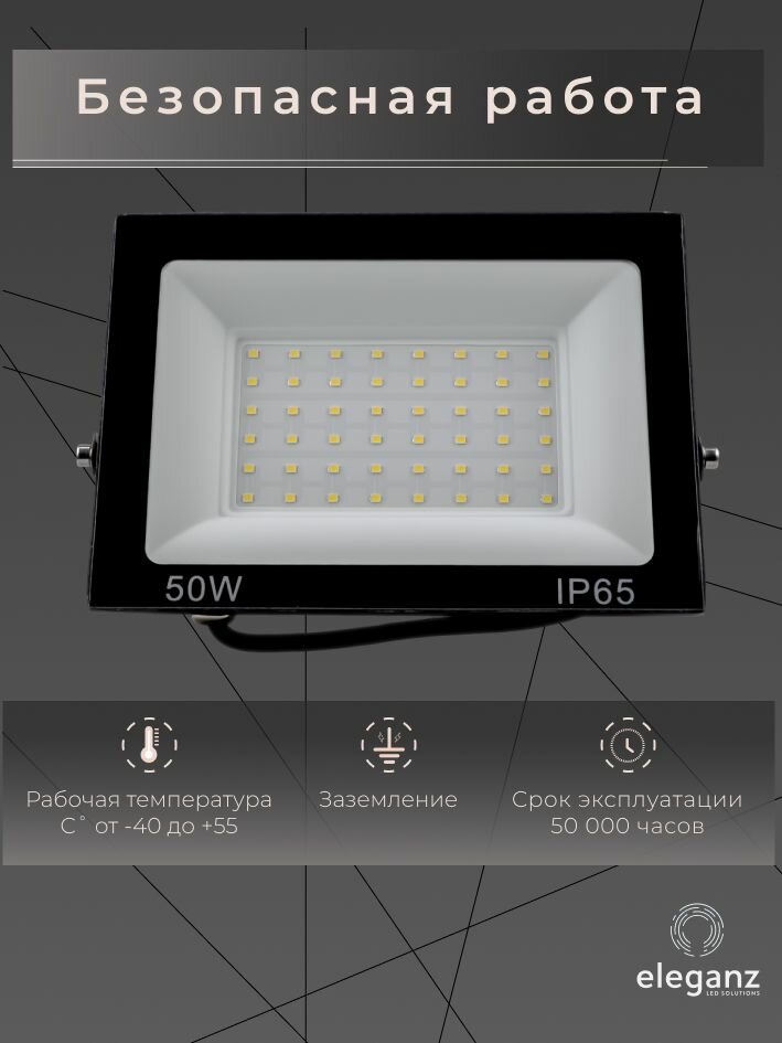 Отзывы на Прожектор светодиодный уличный "Eleganz 50 Вт" от сети 220В, IP65, алюминий, 4750Лм, 6000К, 1 шт.