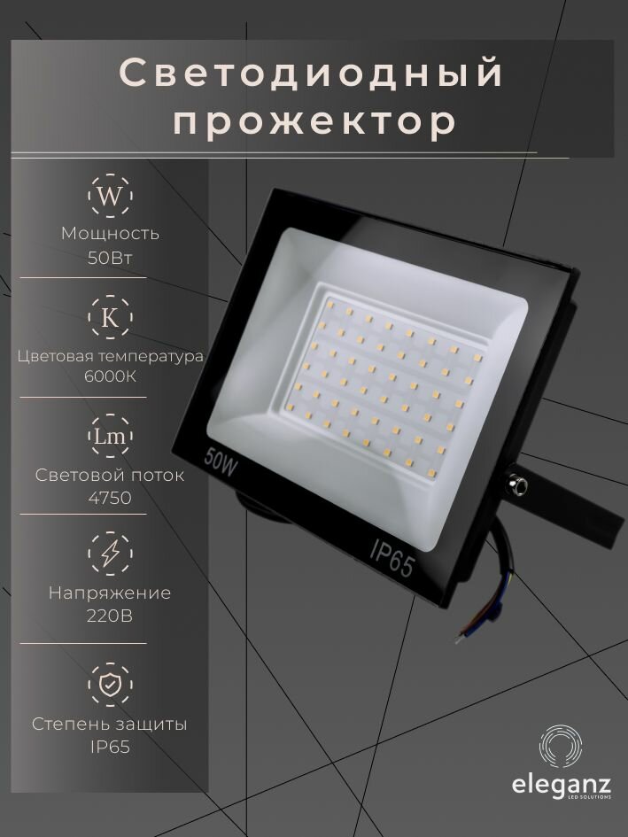 Прожектор светодиодный уличный "Eleganz 50 Вт" от сети 220В, IP65, алюминий, 4750Лм, 6000К, 1 шт. информация: