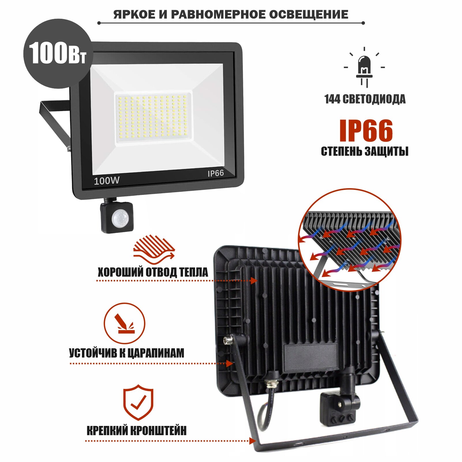 10 цен на Прожектор 100 Вт с датчиком движения на настенно-потолочном креплении FK-PRJ