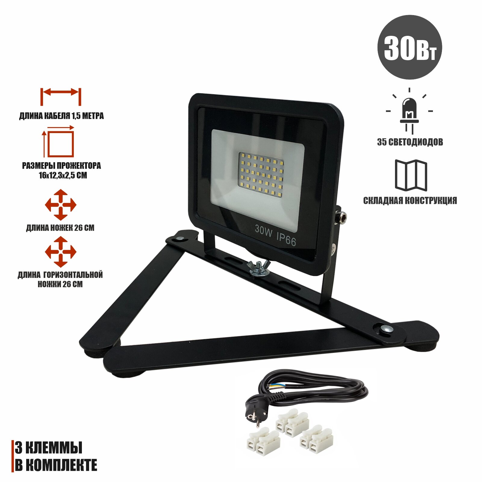 Прожектор светодиодный 30Вт на настольной подставке с кабелем 1,5м и клеммами информация:
