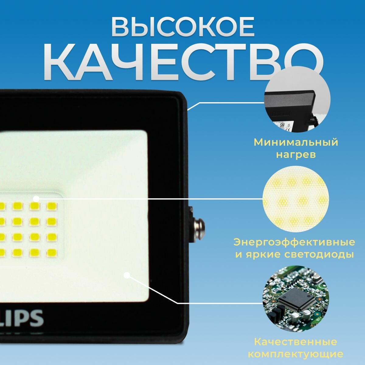 Отзывы на Прожектор светодиодный уличный Philips LED BVP150 20Ватт, 4000К, нейтральный белый свет, фонарь для освещения, черный корпус 1800лм IP65, упак 1шт.