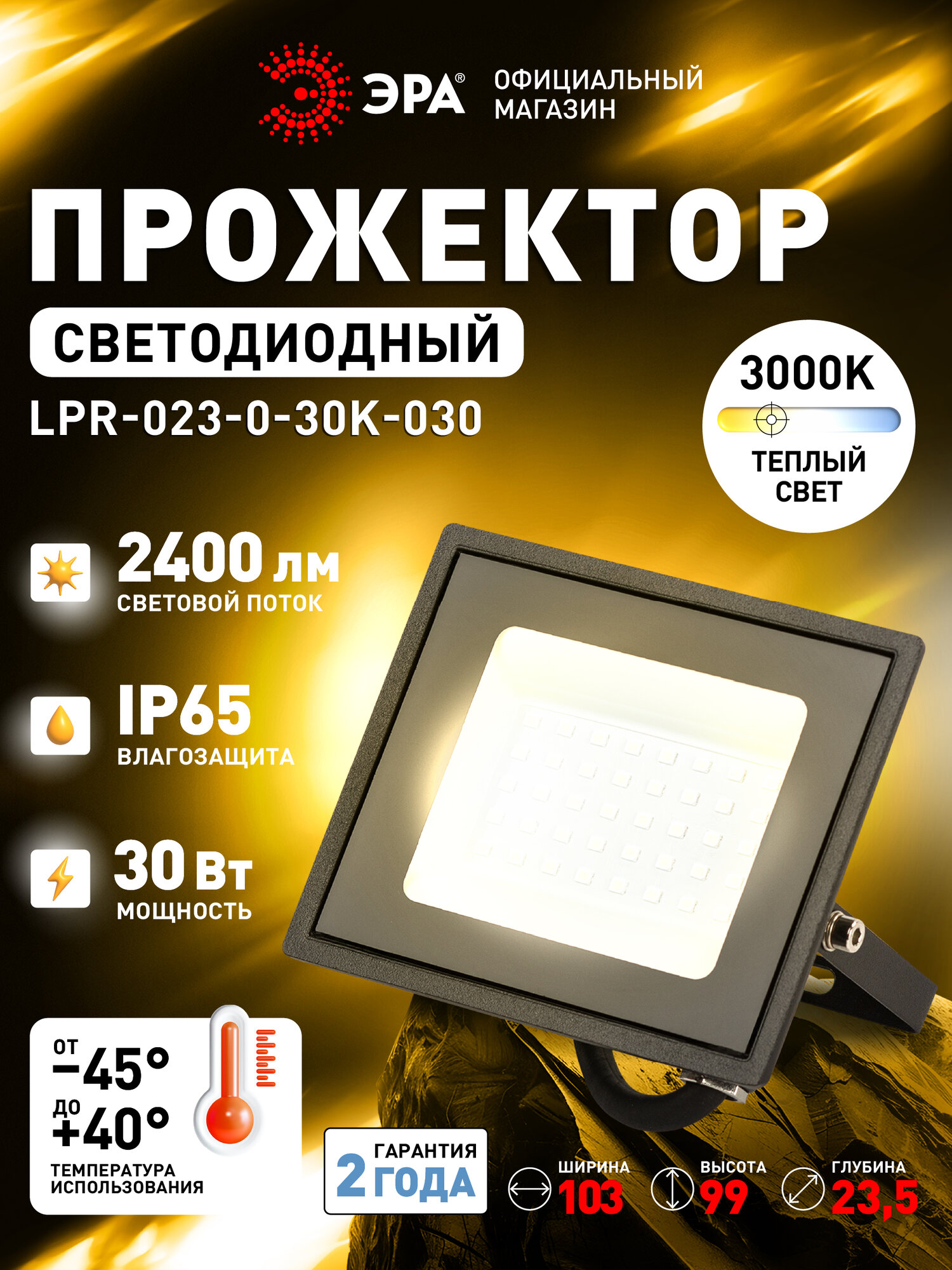 Прожектор светодиодный уличный ЭРА LPR-041 с датчиком движения влагозащищенный от сети, 30Вт, 3000К, IP65 информация: