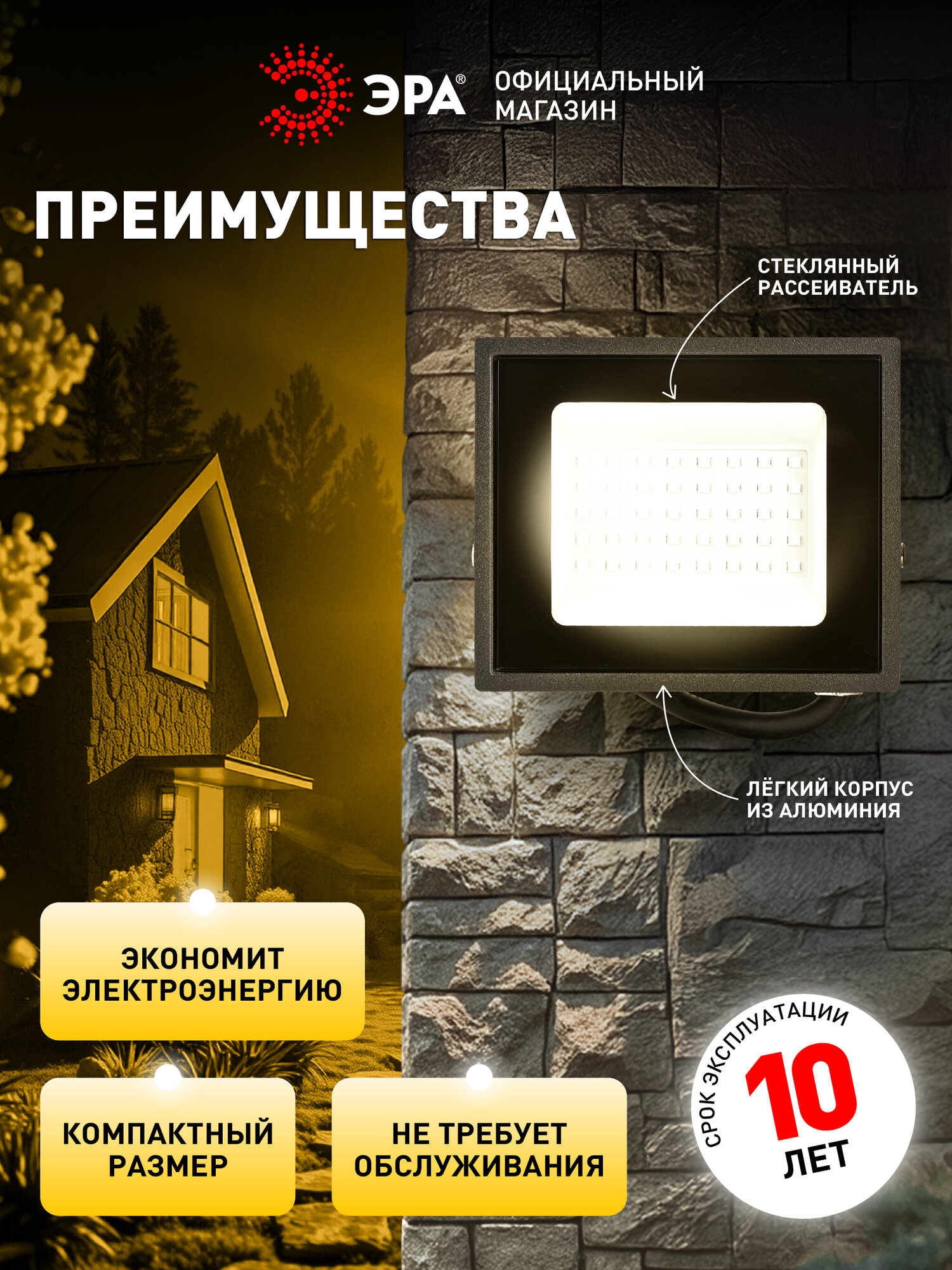 Отзывы на Прожектор светодиодный уличный ЭРА LPR-041 с датчиком движения влагозащищенный от сети, 30Вт, 3000К, IP65