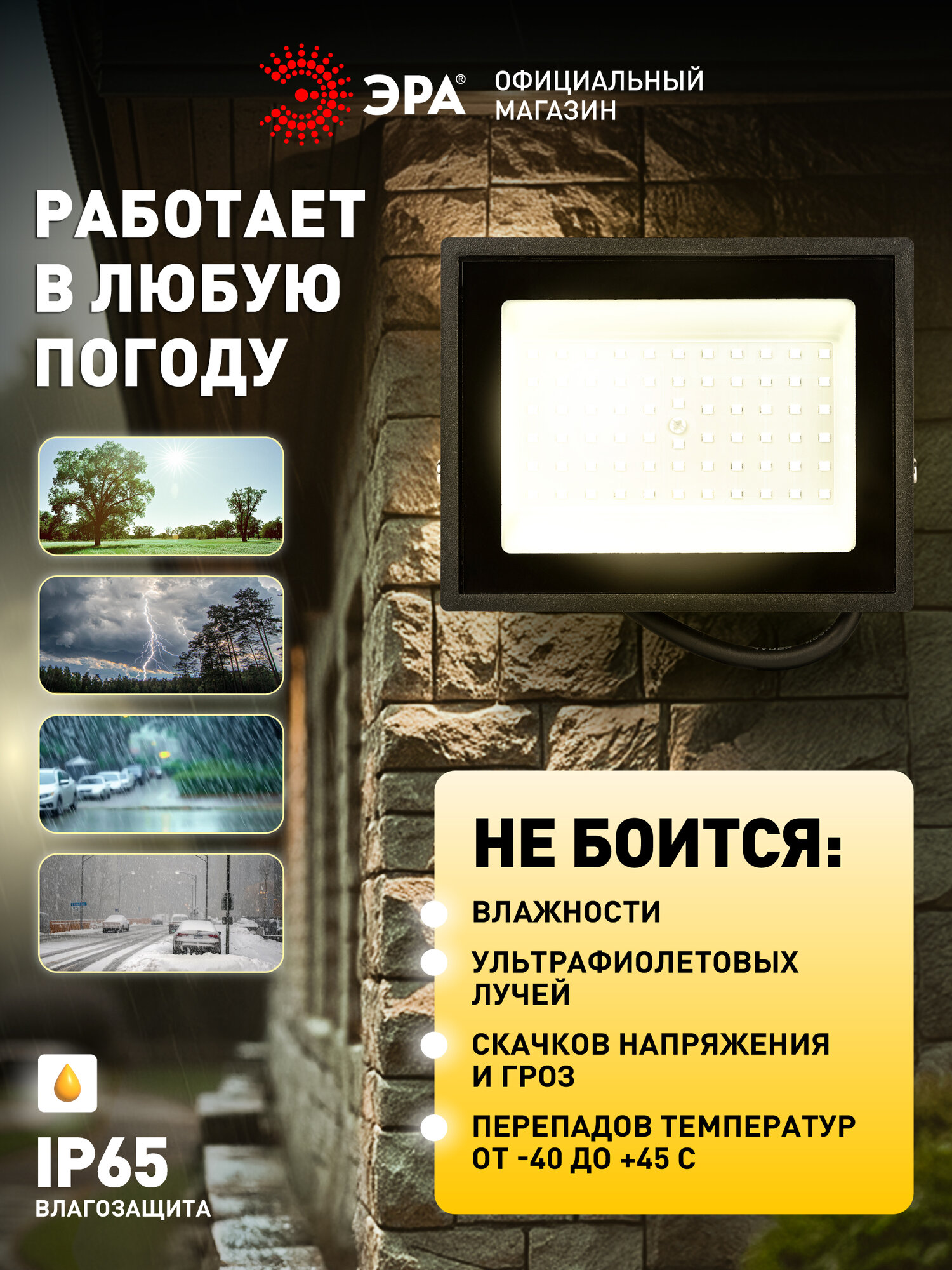 Отзывы на Прожектор светодиодный уличный ЭРА LPR-041 с датчиком движения влагозащищенный от сети, 50Вт, 3000К, IP65
