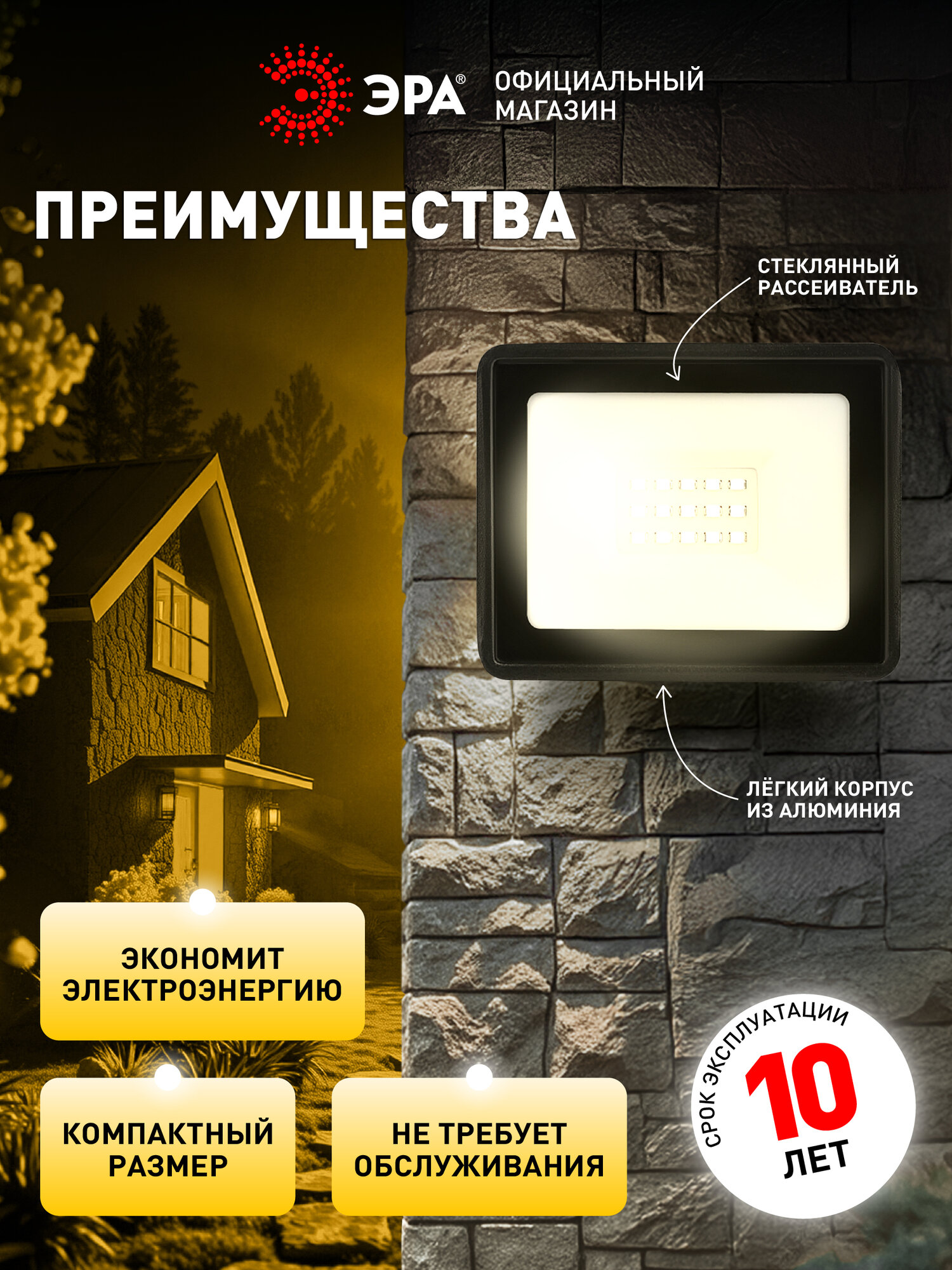 Отзывы на Прожектор светодиодный уличный ЭРА LPR-041 с датчиком движения влагозащищенный от сети, 20Вт, 3000К, IP65