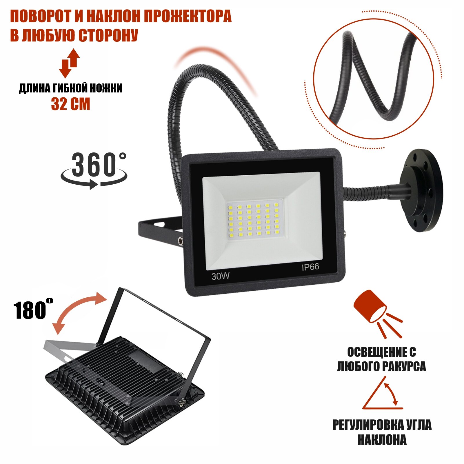 Прожектор светодиодный 30Вт на настенном гибком креплении FLAN-GDS информация:
