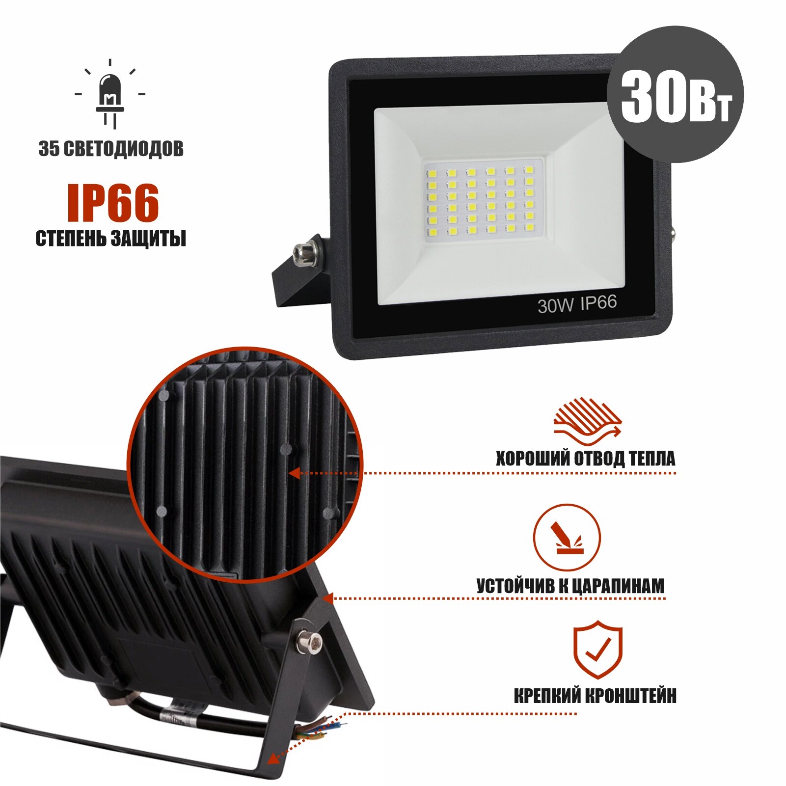Прожектор светодиодный уличный металлический 30Вт/6500К/IP66