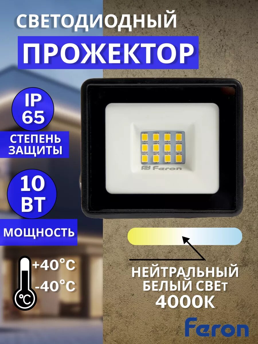 Светодиодный прожектор Feron LL-918, 10 Вт, IP65, уличный, 4000К, черный информация: