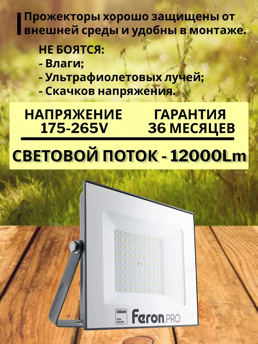 Светодиодный прожектор Feron LL-1000, 100 Вт, IP65, уличный, 6400К, белый информация: